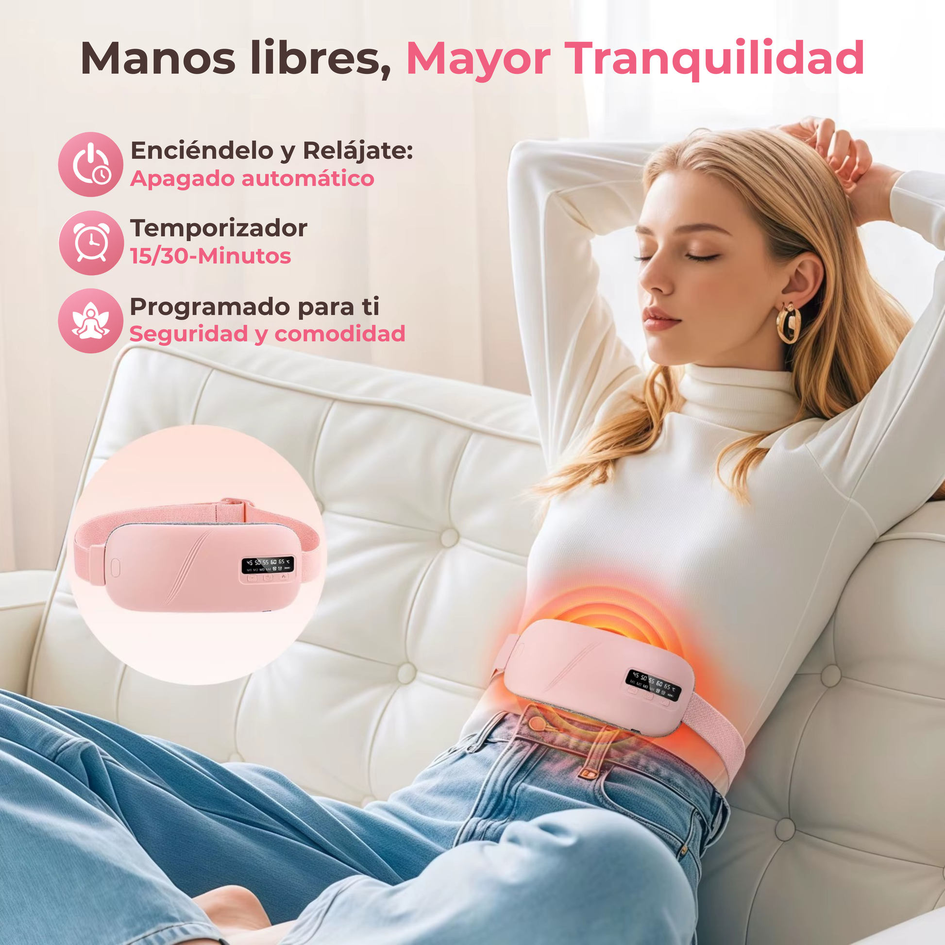 El día 1 de mi periodo antes me dejaba dejaba tirada en la cama. Ahora solo me pongo el cinturón y siento como me calma mientras hago mis cosas en casa. Los niveles ajustables de calor son una maravilla. Si estás dudando, cómpralo. Te lo vas a agradecer después.